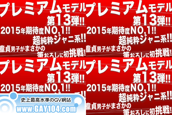プレミアムモデル第○弾!!2015年期待度NO.1!! スタッフ渾身の最高傑作!!超純粋!!しかも超巨根!!童貞ジャニ系男子 が遂にリリース!!注目度NO.1!!長期に渡りスタッフが交渉し続けてきた激カワ男子が初登場!!B・Sファン受け間違いなし!!!鍛えられた肉体美は必見☆そんな彼をスタッフが責めまくっちゃいました☆イケメンな割に実は童貞な彼!!そんな彼が男に身体を触られ即ビンビン!!さらに乳首→チンコと舐めまくると感じまくる場面も・・最後はあまりの気持ちよさに耐えられず大量精子を勢いよく発射!!スタッフ一押し☆この機会お見逃しなく☆