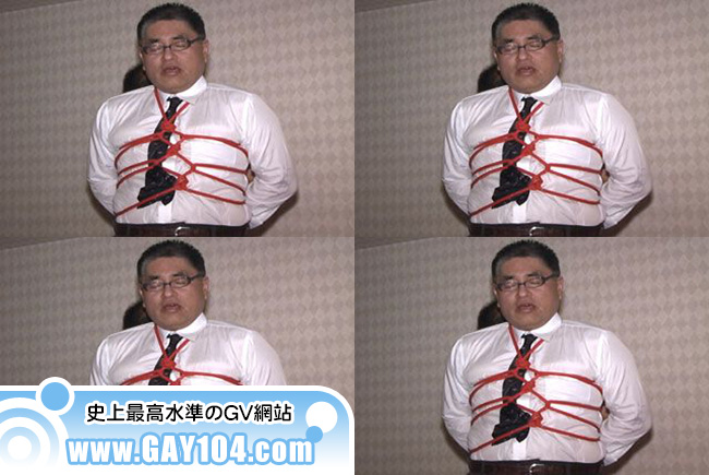 170cm×105kgのガチでぶリーマンがM志願。縛り、ムチ、ローソク責めに大満足のリーマン…。しかし、肝心のケツがNGで横井警備員も激怒!!「こうやるんだ!」と、横井警備員自らディルドでお手本を披露。そしてリーマンの顔面に、怒りの種付け!!【サンダービデオ:中年縄志願 より】
