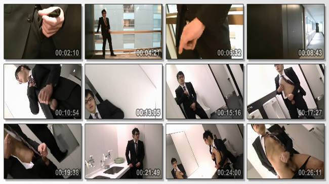 淫乱眼鏡スーツリーマンがオフィスビルの中で大胆露出!!エスカレーター、エレベーターホール、廊下、給湯室、小便器前…人が来そうな場所を好んでLetsセンズリ!!OLが後ろを通る時に見せる焦った顔が特にリアル。