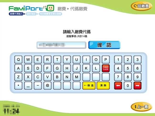 4.輸入繳費代碼 ( 共14碼 ) 後點選 [確認]
