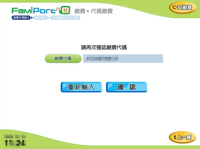 5.再次確認繳費代碼輸入無誤後點選 [確認]