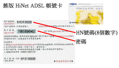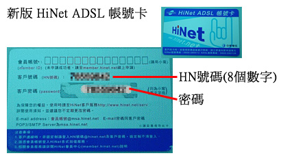 步驟二: 輸入您的HiNet用戶識別碼及密碼 HiNet用戶識別碼及密碼均標示在帳號卡。